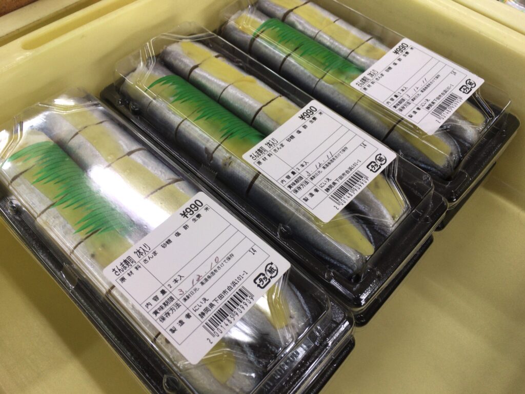 冬季限定、伊豆白浜名物のさんま寿司も売っていました。