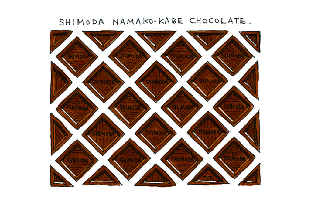 最近描いたのは「なまこ壁チョコ」。どこかのパティシエさんが作ってくれないかなと。漆喰部分を等間隔に避けながら、平たいチョコを並べるだけ!