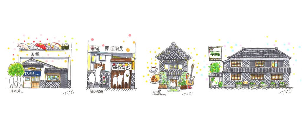 下田のお店でもなまこ壁をうまく見せているお店が多数。外観に風情があって面白いですよね。