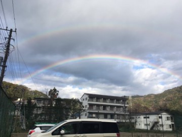 保育園へお迎えに行った際には、タブルレインボーに遭遇。子どもたちも大はしゃぎで空を見上げていました。