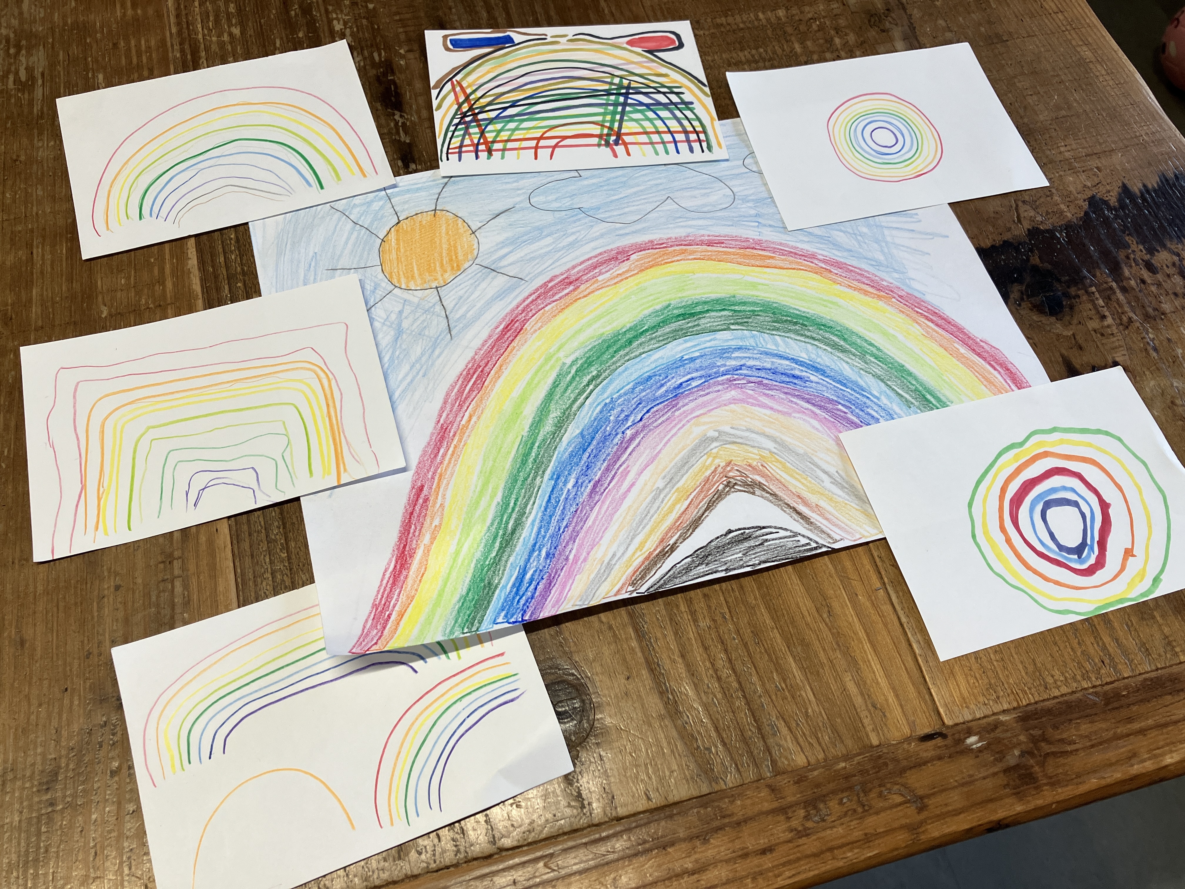 虹を見る機会が多いからなのか、子どもはよく虹の絵を描きます。