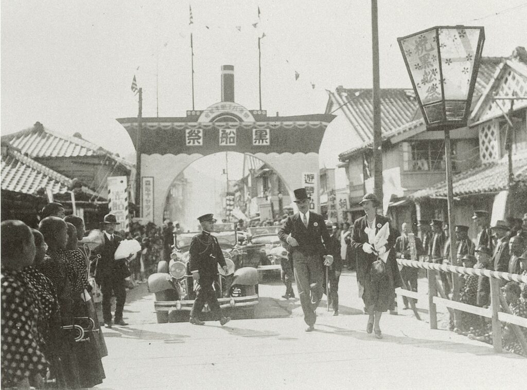 下田開港に尽くした人々の偉業を称え、世界平和と国際親善に貢献するため、1934年(昭和9年)に始まりました。(上記画像は第1回の様子)