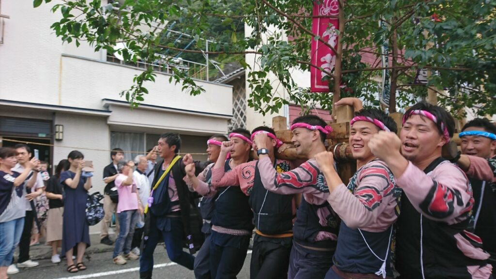 7月に入り、夜になると各町内からは太鼓を練習するお囃子の音が響きます。最近はインバウンドの外国人の観光客が練習風景を珍しそうに見学する姿も見られます。