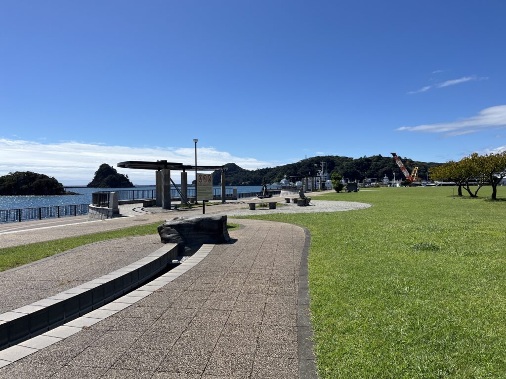 下田港の目の前、観光で来る方も一度は目にする公園が、まどが浜海遊公園。ここは何より駐車場がある!利便性抜群です!綺麗に整えられた芝生が、風に揺られる様子や、黒船を模した遊覧船を眺めながら、時には足湯に浸かったり。仕事中に休憩している人も多く、「みんな頑張ってるんだな」と勇気付けられることもしばしば。日陰が少なく、結局車の中で休んじゃう事もあるので、くつろぎポイントは若干低め。
