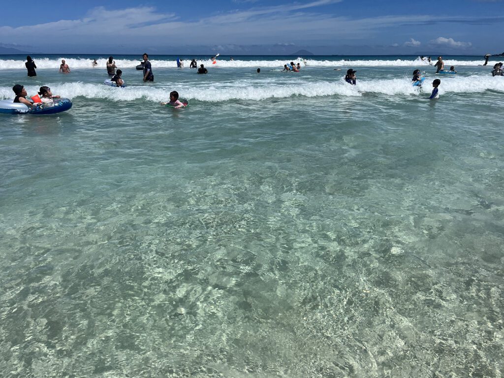 今年は数年ぶりに夏の海を満喫!夏は宿が繁忙期なので毎日余裕がない。。。でも子どもたちは夏休みなので少しでも楽しんでもらいたい。。。。ということで、お客さんがチェックアウトして、チェックインするまでの掃除時間の合間を使って弾丸海遊びを強行!熱中症予防も兼ねて1時間程度の海遊び。小さい頃は波を怖がっていたけど、もう大丈夫。波を楽しむ遊び方を覚えたら海がもっと面白くなる!ありがたいことに天気にも恵まれ、毎回透明度は抜群、AAランクの水質。こんな身近にこんなきれいな海がある幸せ。