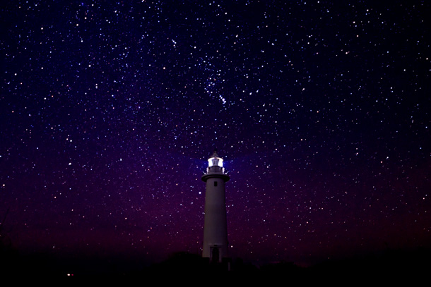 須崎にある爪木崎の高台など、波の音を聞きながら灯台ごしに見上げる星空はメッチャ美しい景色で、