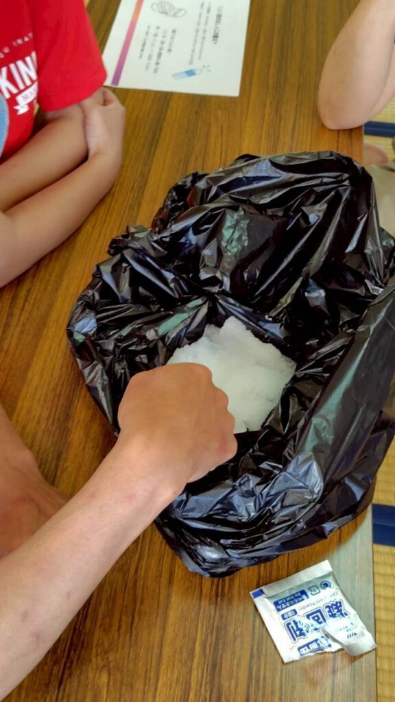 重要ことはさらに続き、アルファ米非常食(尾西食品さんのヤツ美味いっ!おすすめ)の試食や防災トイレの作り方、使い方、凝固剤の固まり方も教えてもらっちゃいました(^^)v。