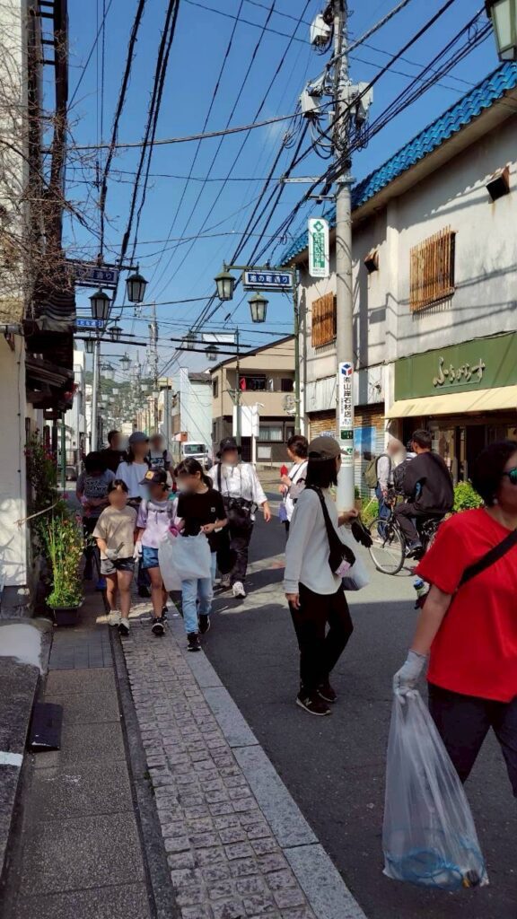 途中、町内に掲示されている避難看板や海抜高さ表示を確認したり、電柱の高さを目安に津波の想定高さを把握したり、過去に起きた津波の痕跡を見るなど、所々で説明を受け防災意識を高めつつ、参加してくれた多くの子どもたちの明るい声で「ゴミ発見っ!」「ナイスぅ~」と楽しく巡ることができました。